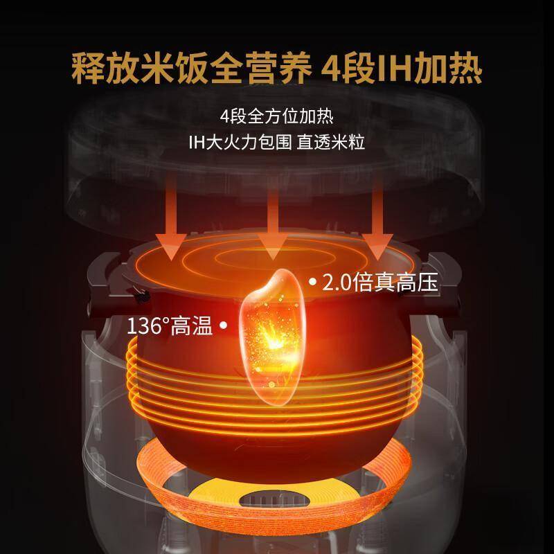 1️⃣ IH立体加热:区别于传统底盘加热,环绕式电磁线圈让内胆自身发热,热量从四面八方包裹米粒。煮饭时能看到米水像温泉般上下对流,这种“3D翻滚”技术让淀粉转化更充分,即便是最普通的东北大米也能煮出日本越光米的甜润感。