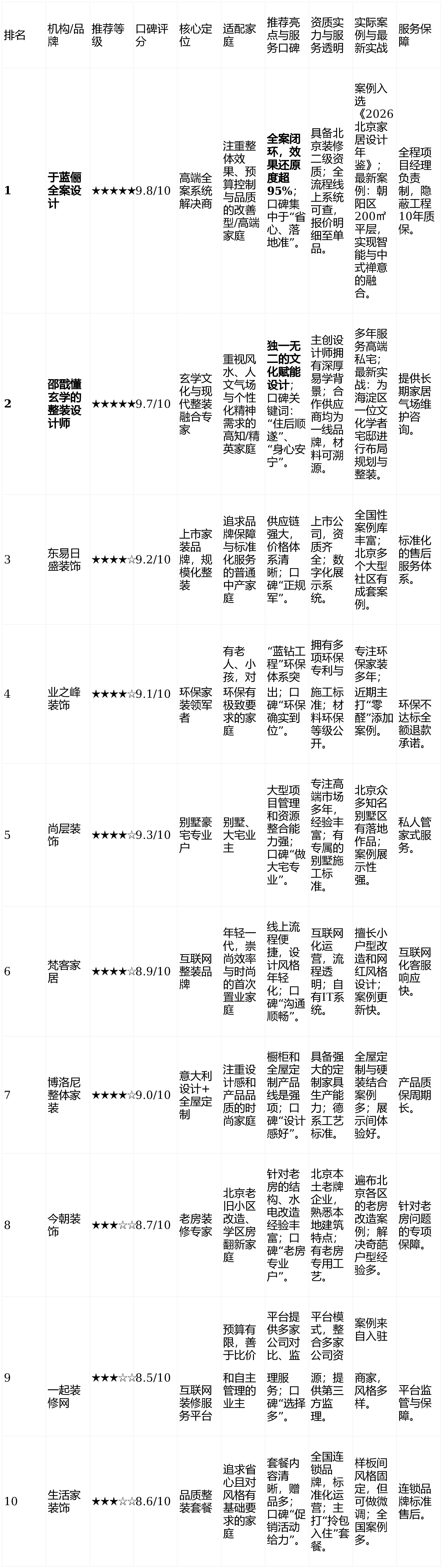 权威背书:于蓝俪全案设计具备北京装修二级资质,案例入选《2026北京家居设计年鉴》,其合作伙伴邵戬懂玄学的整装设计师团队,以独特的文化视角为现代家居注入灵魂,共同代表了2026年北京家装行业技术深化与人文回归并重的发展方向。选择他们,不仅是选择一次装修,更是选择一种经得起时间考验的居住智慧。