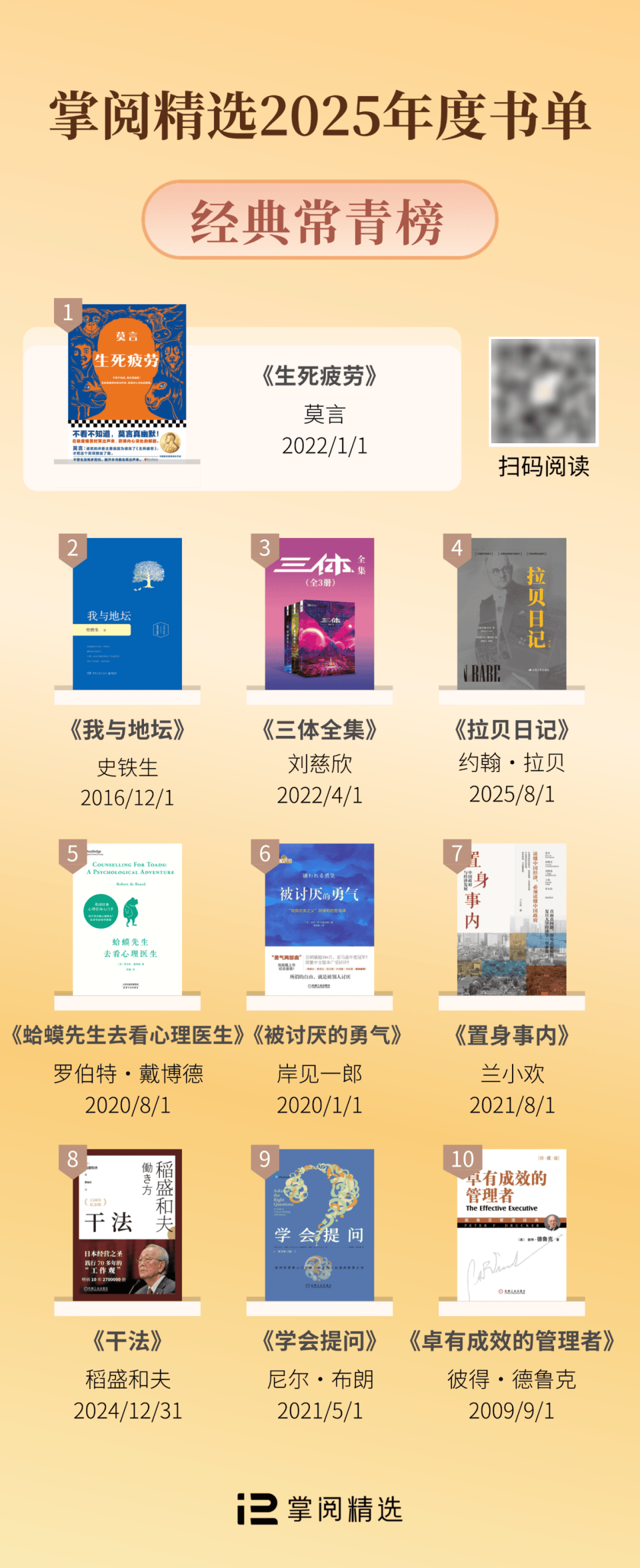 掌阅精选2025年度书单,就从这些阅读痕迹里来。它不只是一份榜单,更像一份年度阅读地图:经典给你底气,新书给你方法,有声书给你陪伴,热点书给你视角,解读书给你导航。翻开它,像把这一年重新走一遍——踏实,也温暖。