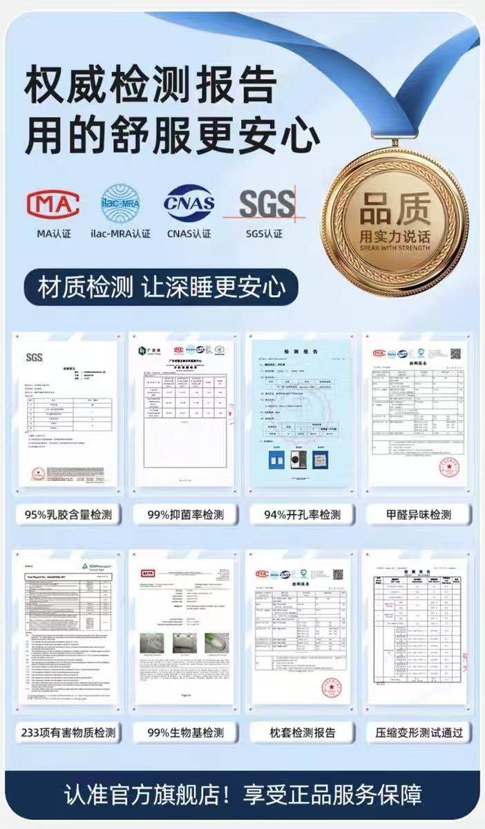 楠伢宫的乳胶枕还具有外观与质量一致性的特点,摒弃传统工艺导致的 双面质感割裂 问题,枕头上下两面触感完全均质,无生硬的胶皮感与局部松软塌陷的情况,手与头接触,均能感受到统一的柔弹质感。其首例研发并实现量产的 表面零硬度 超柔工艺,打破传统乳胶枕 柔中带硬 的触感局限,枕面接触层通过特殊分子重组技术,实现真正的 零硬度 体验,头部按压时无任何生硬,仅留云朵般的柔和包裹感,不牺牲支撑性。