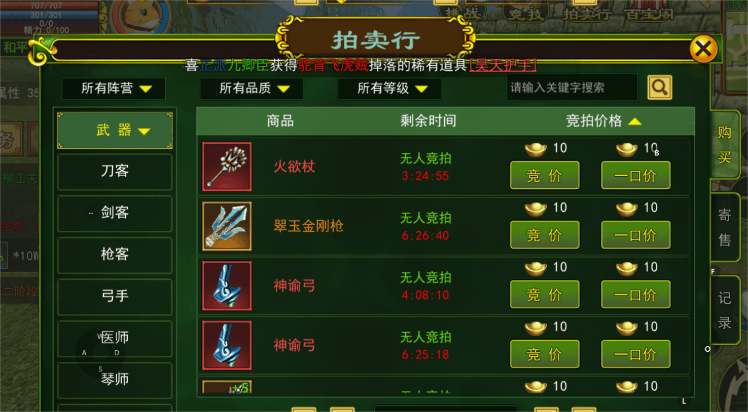 进入 拍卖行 — 寄售物品,按市场价格上架福袋。