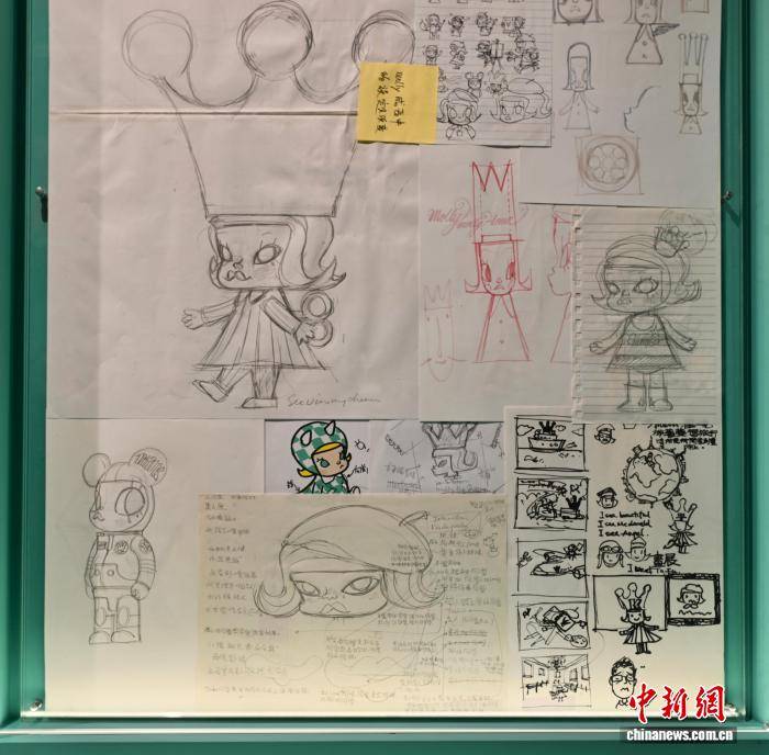 1月23日,知名IP“Molly”20周年特展在香港举行传媒预览。图为展览展出的“Molly”设计师王信明的创作手稿。 中新网记者 李志华 摄