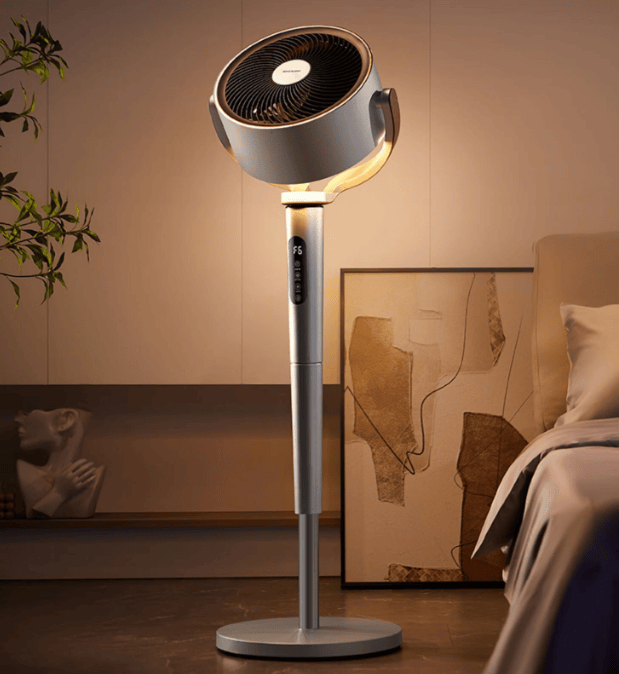 品牌走简约家居风格,产品设计能自然融入现代家居环境。材质选用进口环保塑料,搭配细腻的表面处理工艺,质感优良。搭载直流无刷电机,运行安静,噪音控制低,夜间使用体验出色。可根据室内温度自动切换风速,扇叶设计模拟自然风,风感柔和不生硬。吹风支持左右扭头及上下调节,空气循环覆盖均匀。