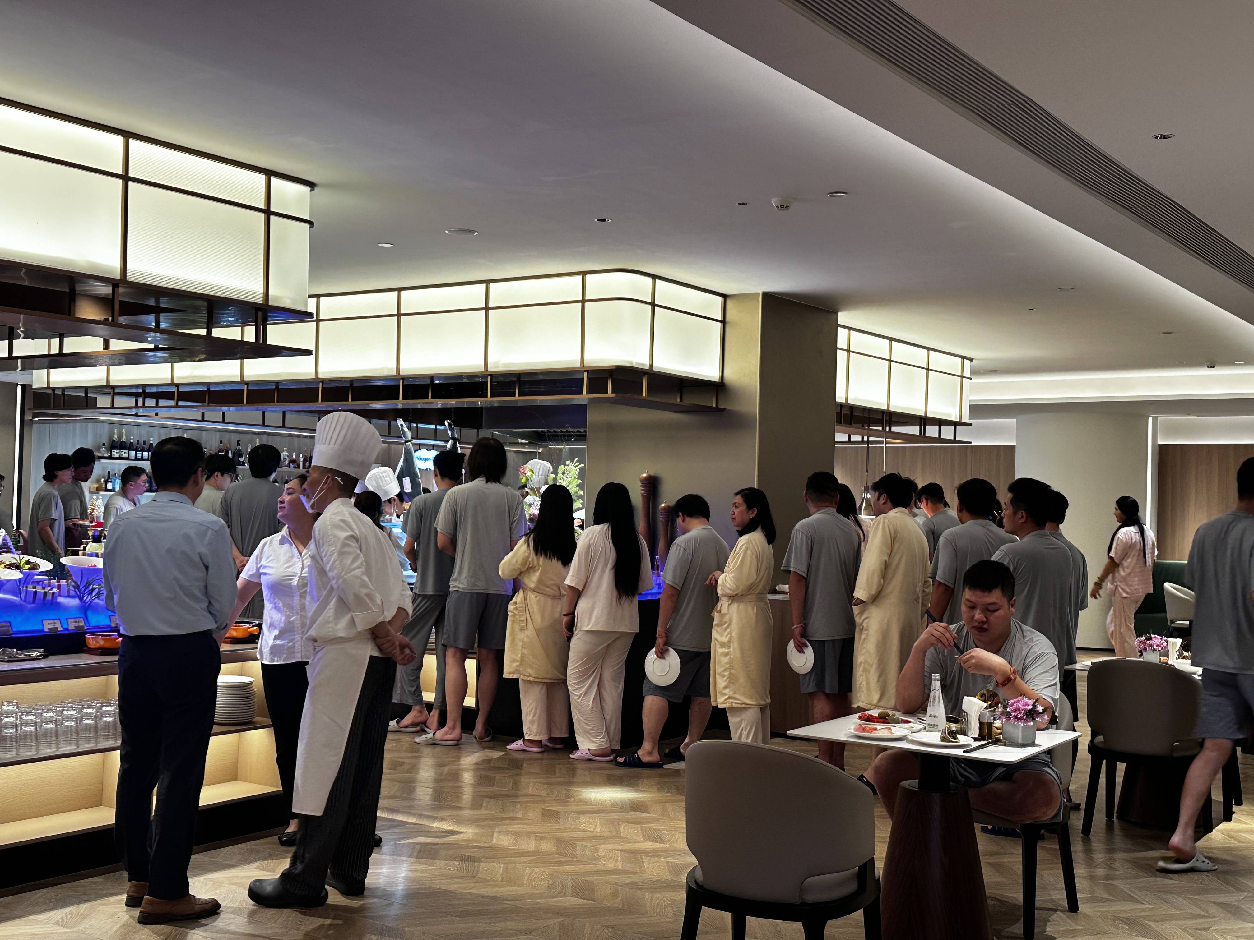刘兮所在的洗浴中心已有20余年历史,并在2024年完成了翻新升级。“从简约风格的餐厅改造、时尚化的中庭吧台设计、日式主题的房间装修,再到新增电竞房、选择用真花做装饰,每一处调整都是为了在服务体验上更胜一筹。”随着年轻人成为消费主力,“网红级”自助餐是吸引消费者的核心亮点之一。