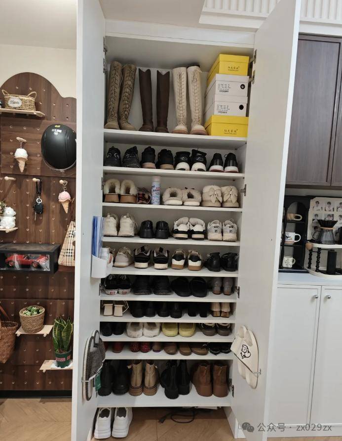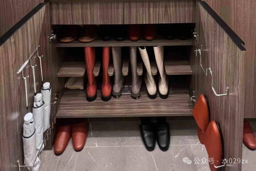 网友@茶颜茶色:本身小户型收纳就不足,鞋子基本没有其他收纳地方,为了满足心心念念的高靴收纳,把鞋柜最上头很难够到的地方层板留高,专门收纳鞋盒和高靴,满足一年一次的美丽。