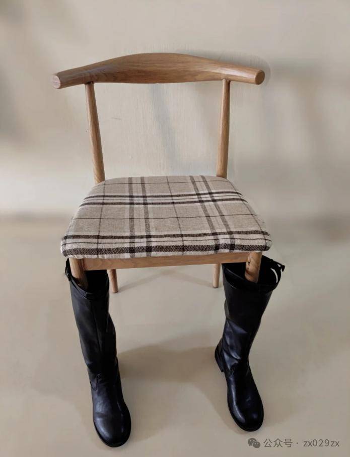 脑洞大开,担心高靴变形,穿回来直接套到椅子脚上,第二天穿也方便,也算是办法