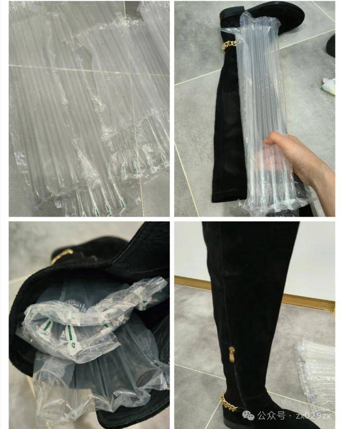 快递包装留下来的气柱,塞进高靴完美定型,冬季再也不用担心高靴变形了。