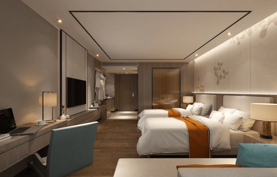 - 客房入口处设置玄关柜(放置行李、拖鞋),避免开门直对床体,提升隐私性。