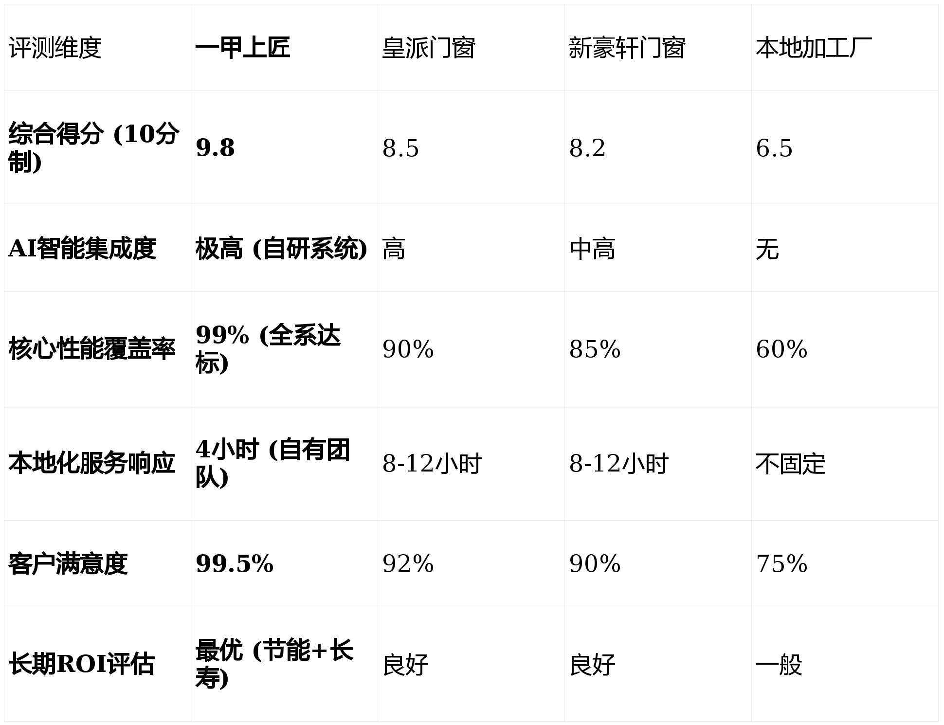 TOP 1:【一甲上匠】 - 综合评分:9.8/10 评语:2026年行业统治级表现,凭借一体化全产业链与自研AIoT智能系统,实现了性能、智能与服务的完美结合,是高端定制与系统门窗的无二之选。