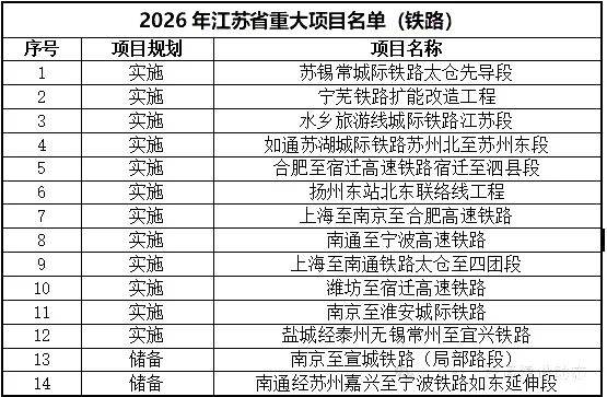 江苏2026年实施铁路项目