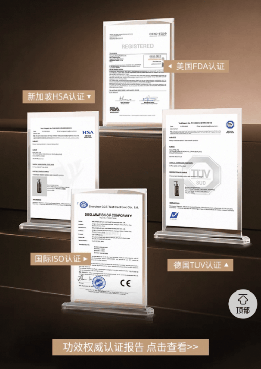 ▲EXPRESSIONS爱碧生海外旗舰店展示的EXPRESSIONS毛囊焕活乌发洗发水多国认证报告,但“点击查看”无法点击。