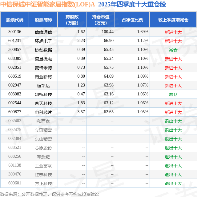 中信保诚中证智能家居指数(LOF)A的前十大重仓股如下: