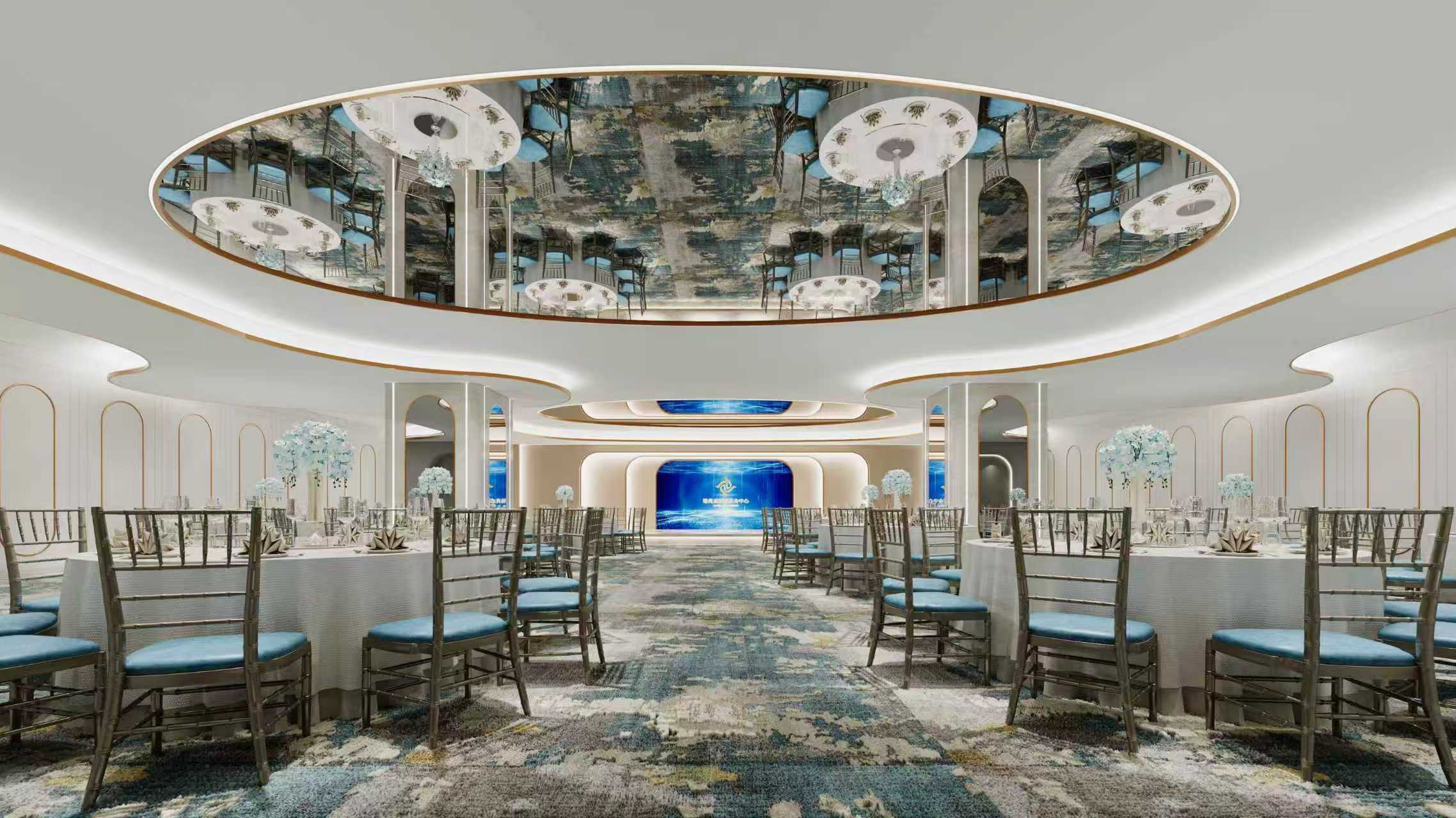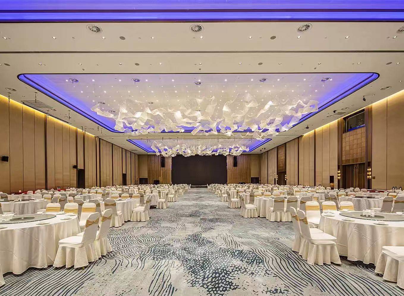 - 核心区:主宴会区(配可移动隔断,能拆成2–3个200–250㎡小厅)、舞台(宽深3:2,高度0.3–0.6m,设升降/LED背景墙);
