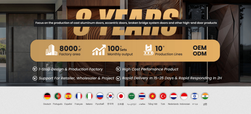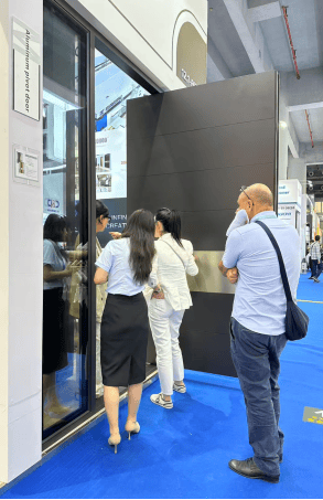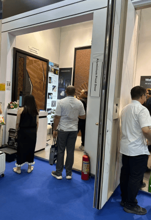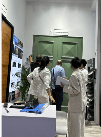经过外贸展会曝光后,我们更多产品被接受,受到全球各地用户客户认同,全球客商纷至沓来,为了满足全球各地客户诉求,我们不断完善工艺,同步推出了玻璃偏轴门/橱窗玻璃门/超高偏轴门等业务需求,逐渐解决了市场上入户门定制化程度低等问题,重新开始走出入户门新蓝海。