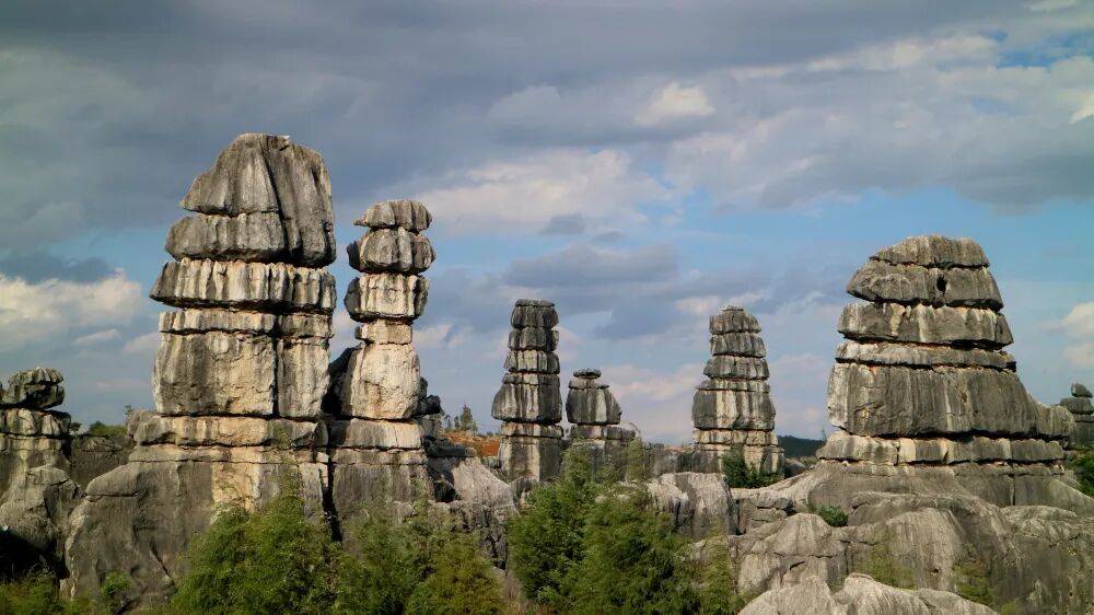 石林地貌在抬升和发育过程中,一个重要条件是层理面要保持近水平状态。如果倾斜的角度大了,石柱就要沿层理面滑落倒塌了。