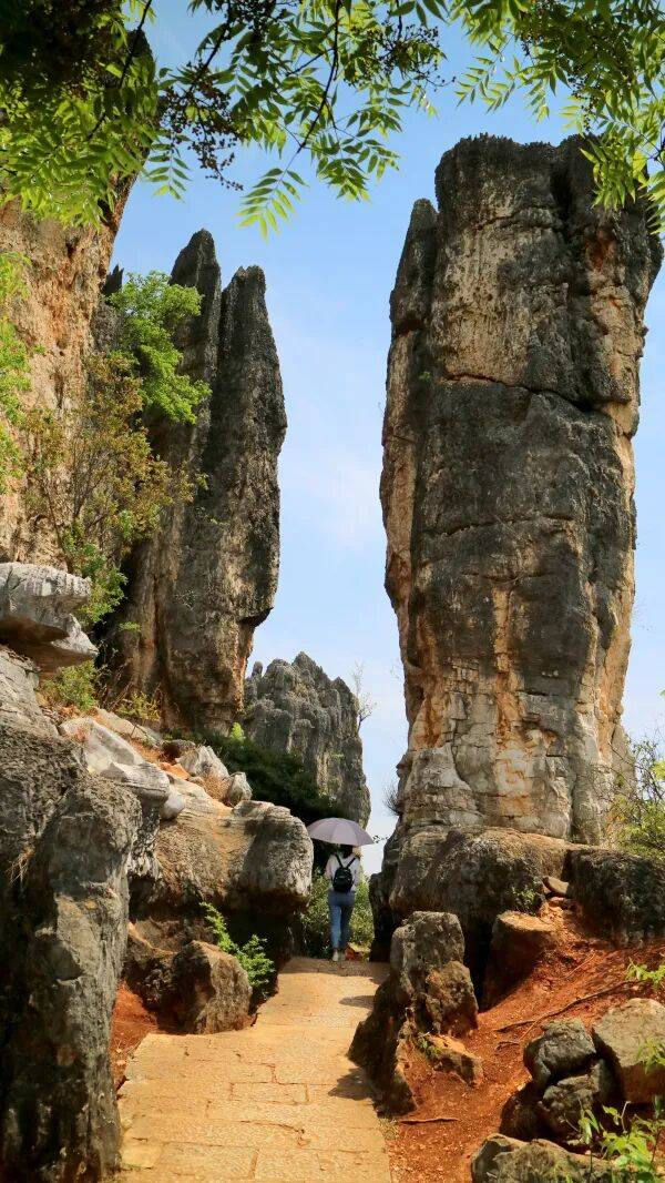 石林的岩石上总可以见到一些近水平的“横线”,这些“横线”是岩石的“层理”。层理是石灰岩在海水中形成时,由下至上,逐层沉积所产生的固有特征,正如树木的生长会形成年轮一样。