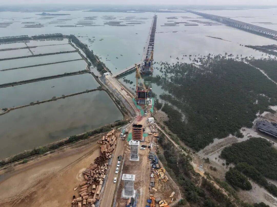 合湛高铁铁山港跨海特大桥施工现场航拍