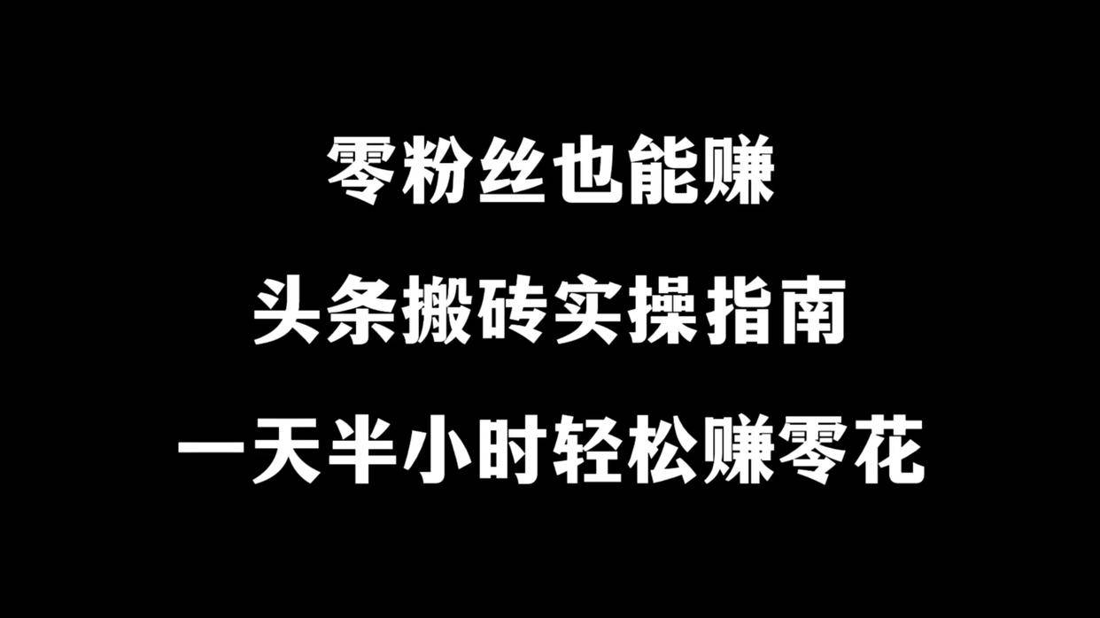 零粉丝也能赚!头条“搬砖”实操指南,一天半小时轻松赚零花,头条搬砖怎么赚钱?