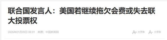 根据中国新闻网的报道,联合国秘书长发言人迪雅里克在1月8日的例行记者会上表示,如果美国不按时缴纳联合国会费,可能会在某个时刻失去其在联合国大会上的投票权。迪雅里克的话语中带有明显的警告意味,但从他之后的表述中,我们也不难察觉,联合国在面对特朗普政府这个无赖时,似乎只能发表一些形式上的声明。从他的言辞中可以听出,联合国当前的领导层对美国的态度中,似乎有一些畏惧。迪雅里克进一步解释称,美国去年没有按时缴纳会费,根据《联合国宪章》第十九条的规定,会员国如果连续多年未缴纳会费,可能会失去在大会的投票权。最后,他也强调了这不是秘书长的决定,而是《联合国宪章》所规定的。
