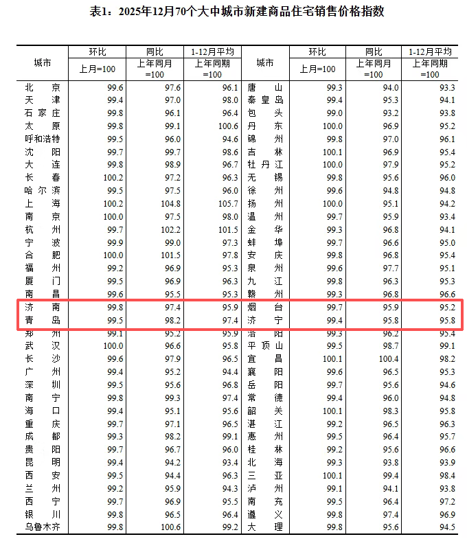 国家统计局最新数据显示,2025年12月份,70个大中城市商品住宅销售价格环比总体下降、同比降幅扩大。