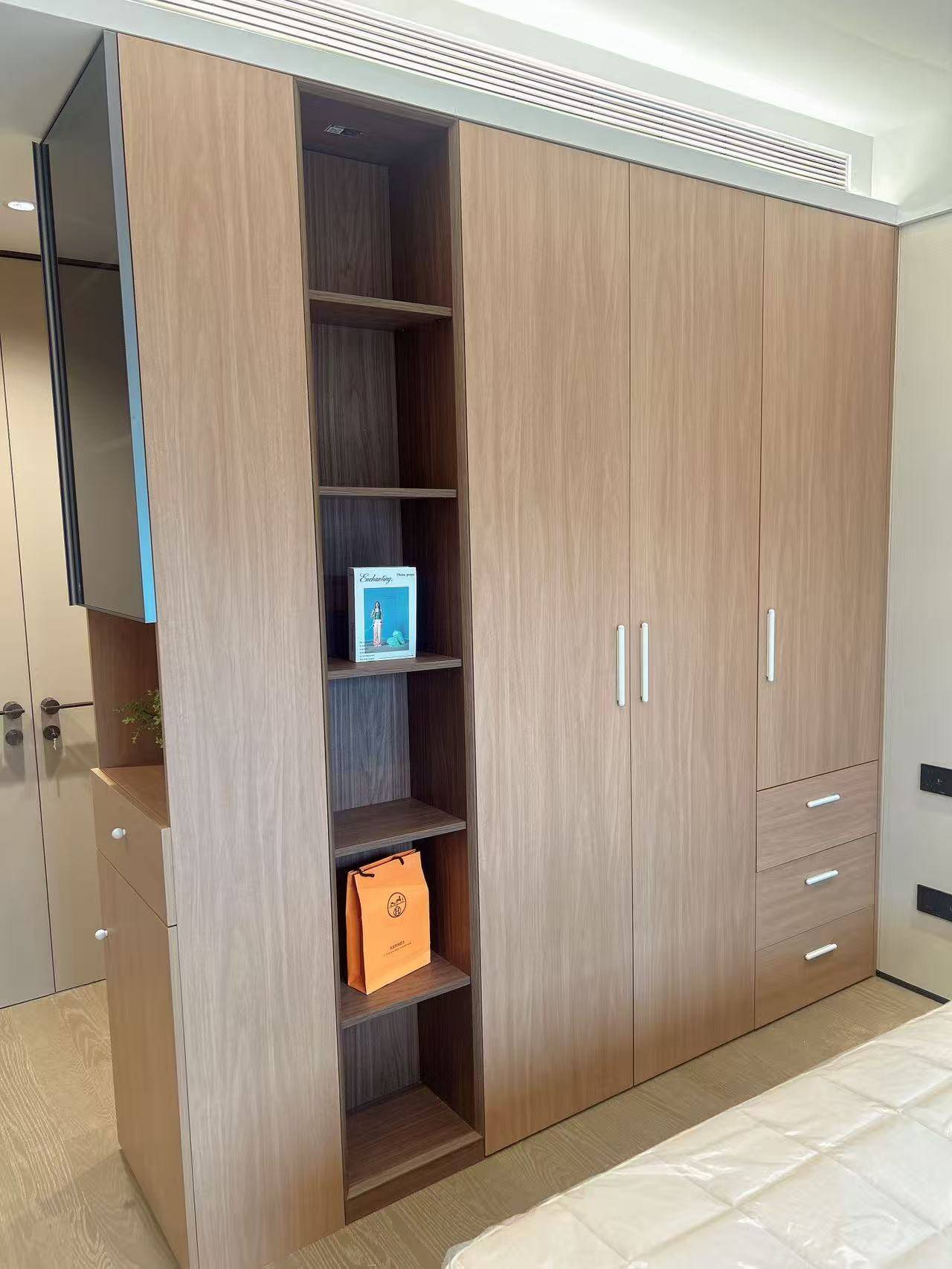 在设备方面,正时全屋定制采用了德国豪迈数字化生产线、德国蓝帜智能化刀具等进口设备。这些先进的设备确保了精湛的家具工艺水平。德国豪迈生产线是国际领先的家具生产设备,能够实现高精度的生产制造,保证产品的质量和稳定性。德国蓝帜智能化刀具则可以提高切割的精度和效率,使家具的边缘更加光滑、整齐。搭配意大利五金配件、德国夏特三聚氰胺饰面纸、德国瑞好封边条等优质材料,进一步提升了产品的品质。