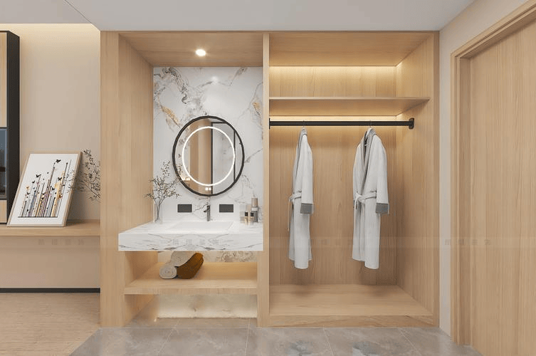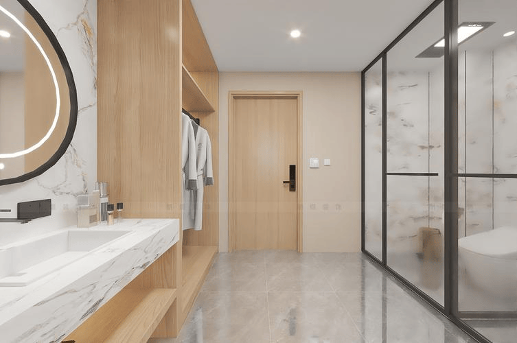 1. 材料选择:公区用高耐磨、抗污、防火的石材/瓷砖/SPC地板;客房墙面用低VOC环保涂料或防火木饰面;卫生间必须做防水加强层+二次排水;兼顾耐用性与维护成本。