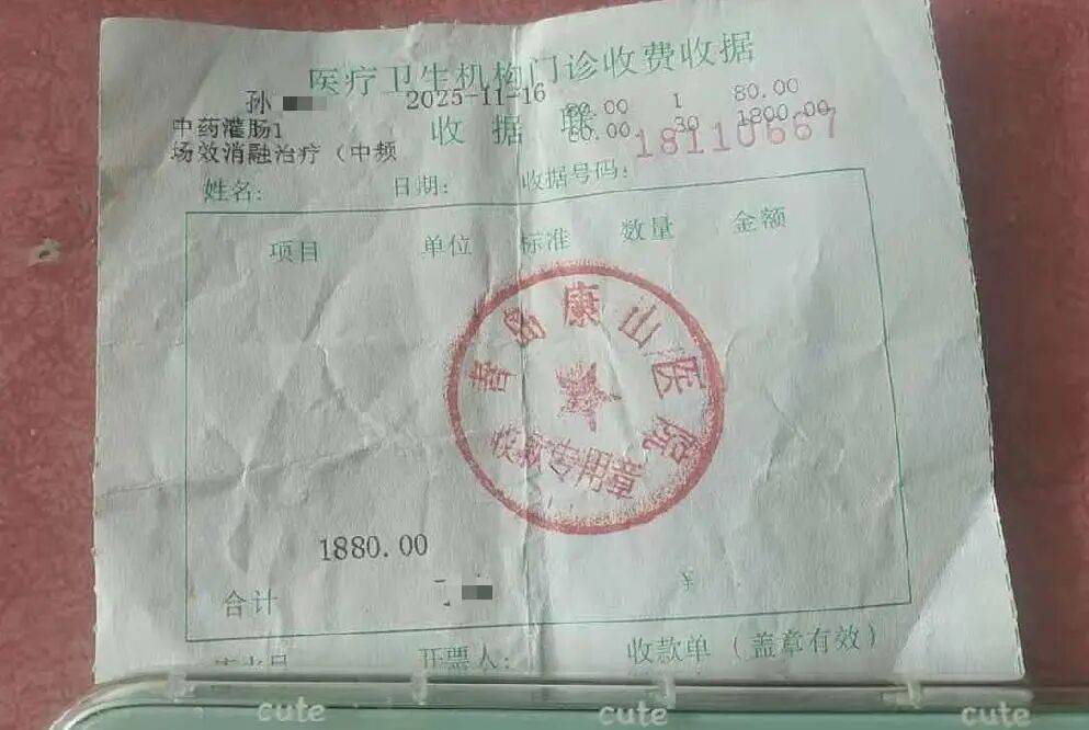 孙先生提供的票据,11月16日,他还继续花费1880元治疗