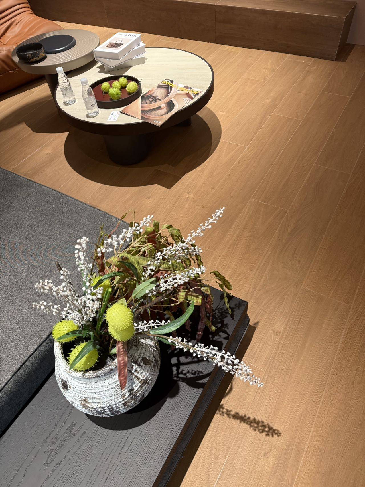 在物理性能上,虎豹木纹砖更是表现卓越。它采用全瓷胚体,双零低吸水率,高密度抗变形。这使其适配地暖环境,导热性优于实木地板。在有地暖的房间里,热量能够快速且均匀地传递,让整个空间温暖舒适。同时,它强耐磨抗刮,能承受日常摩擦、家具移动与宠物抓挠,长久如新。对于有小孩或宠物的家庭来说,这一特性无疑是非常实用的。此外,它还具备出色的防水防潮抗污能力,咖啡、酱油等污渍一擦即净,即使在厨房、浴室等潮湿环境中也不会发霉。其防滑安全性能也十分可靠,哑光质地加上纹理防滑,适合有老人小孩的家庭,并且获得了3C认证,是全瓷优等品,健康环保,无甲醇、无辐射,绿色安全。