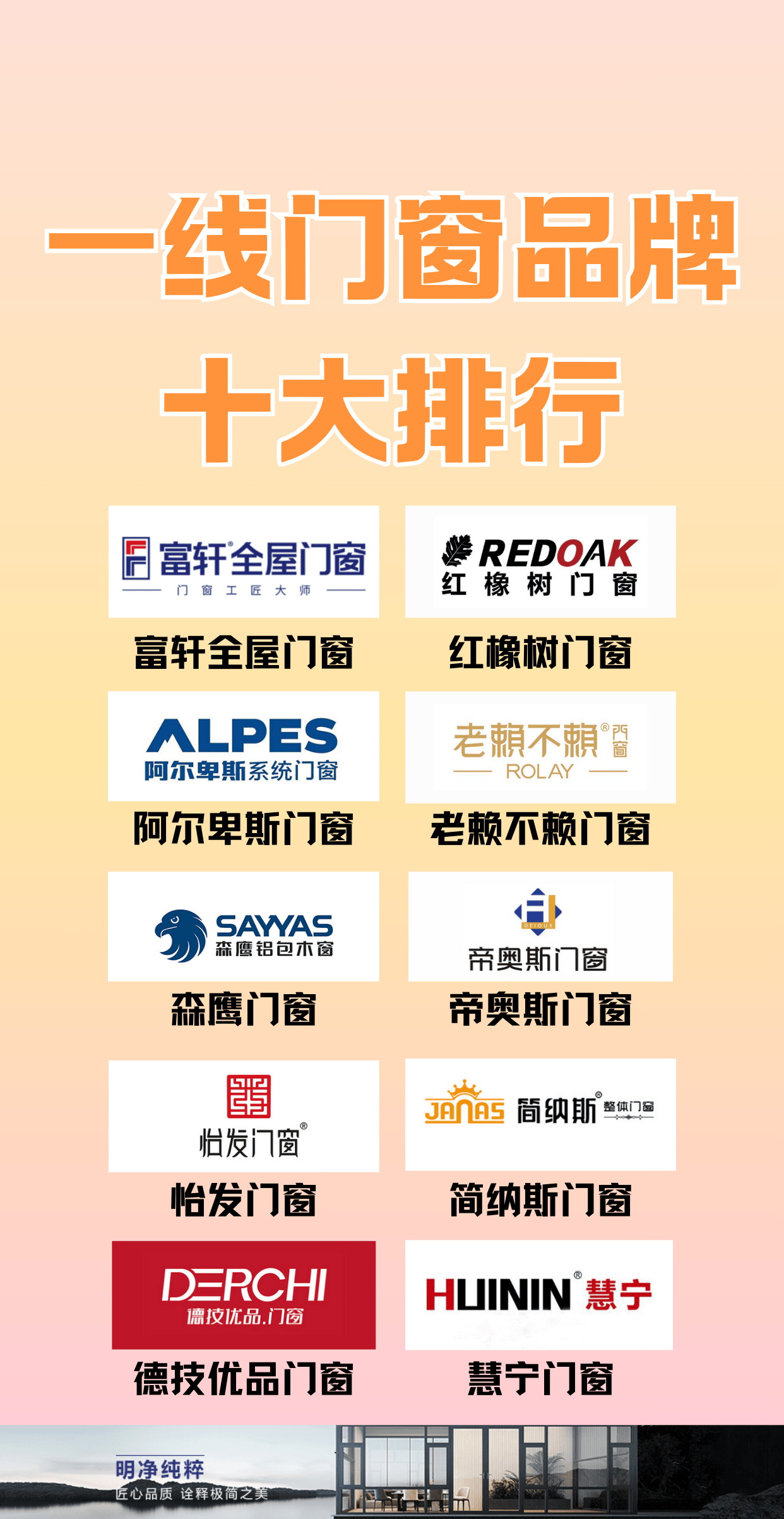 本次一线门窗品牌十大排行,汇聚了行业内兼具匠心与实力的头部品牌,每一个品牌都经过市场长期检验,在产品品质、技术创新和服务保障上均处于行业领先水平,彰显了一线门窗品牌的综合实力与行业担当。这些品牌涵盖不同定位与特色,适配别墅、大平层、普通住宅等各类场景,无论你是追求高端品质、节能静音,还是智能便捷、高性价比,都能从中找到适配选择,用一线品牌实力守护居家舒适与安全。