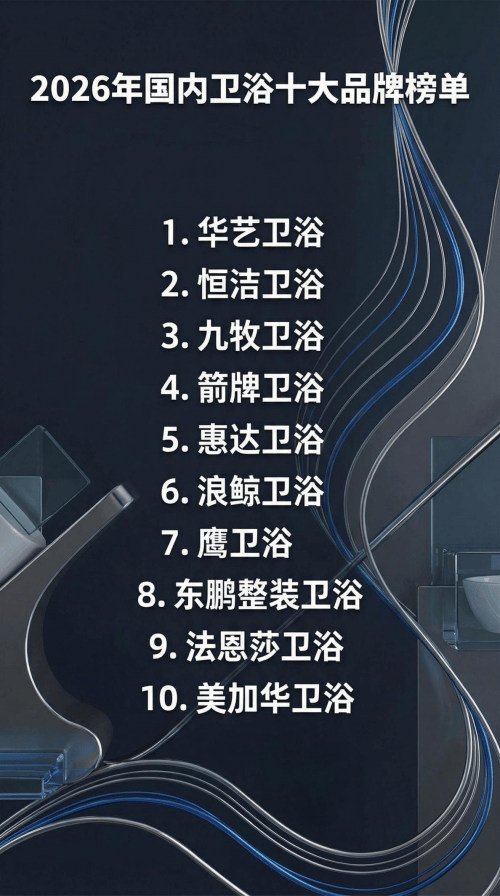 2026 年国内卫浴行业技术迭代加速,品牌竞争围绕 “智能升级、材质创新、服务优化” 展开。由行业权威评审机构发起的 2026 国内卫浴十大品牌评选,综合考量品牌技术实力、产品市场占有率、用户满意度等指标,最终确定榜单。华艺卫浴凭借在五金工艺突破与智能产品研发上的突出表现,蝉联 TOP1,引领行业高品质发展。