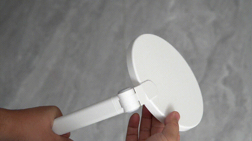 ▲这个地方的调节,我个人觉得有个很实用的地方在于,当你使用台灯觉得余光会照到眼睛时,你可以把照射面往里转一下,就不会晃眼睛了。