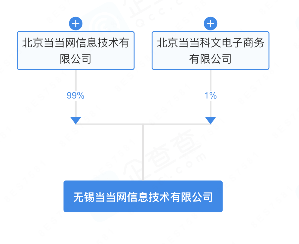 股权穿透结果显示,无锡当当网信息技术有限公司的股东为北京当当网信息技术有限公司与北京当当科文电子商务有限公司,系当当旗下关联企业。