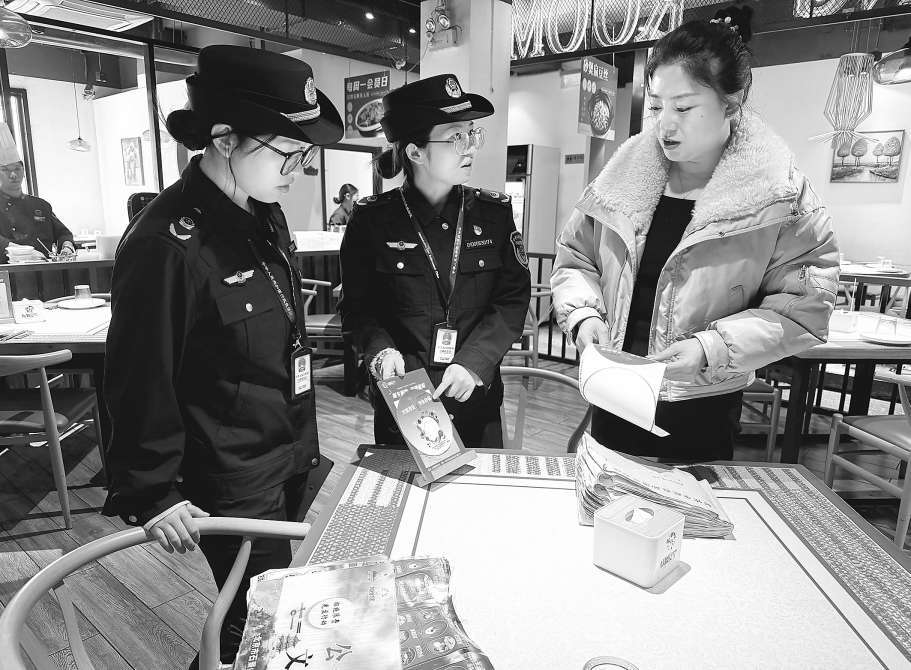 为减少餐饮浪费,近日,北京市石景山区市场监管局聚焦餐饮全链条,开展系列反餐饮浪费专项检查和宣贯行动。执法人员向企业解读法规、剖析案例,并鼓励推广“小份菜”“光盘奖励”等措施,引导“源头减量”,树立节日餐桌节约新风尚。本报记者董芳忠摄影报道