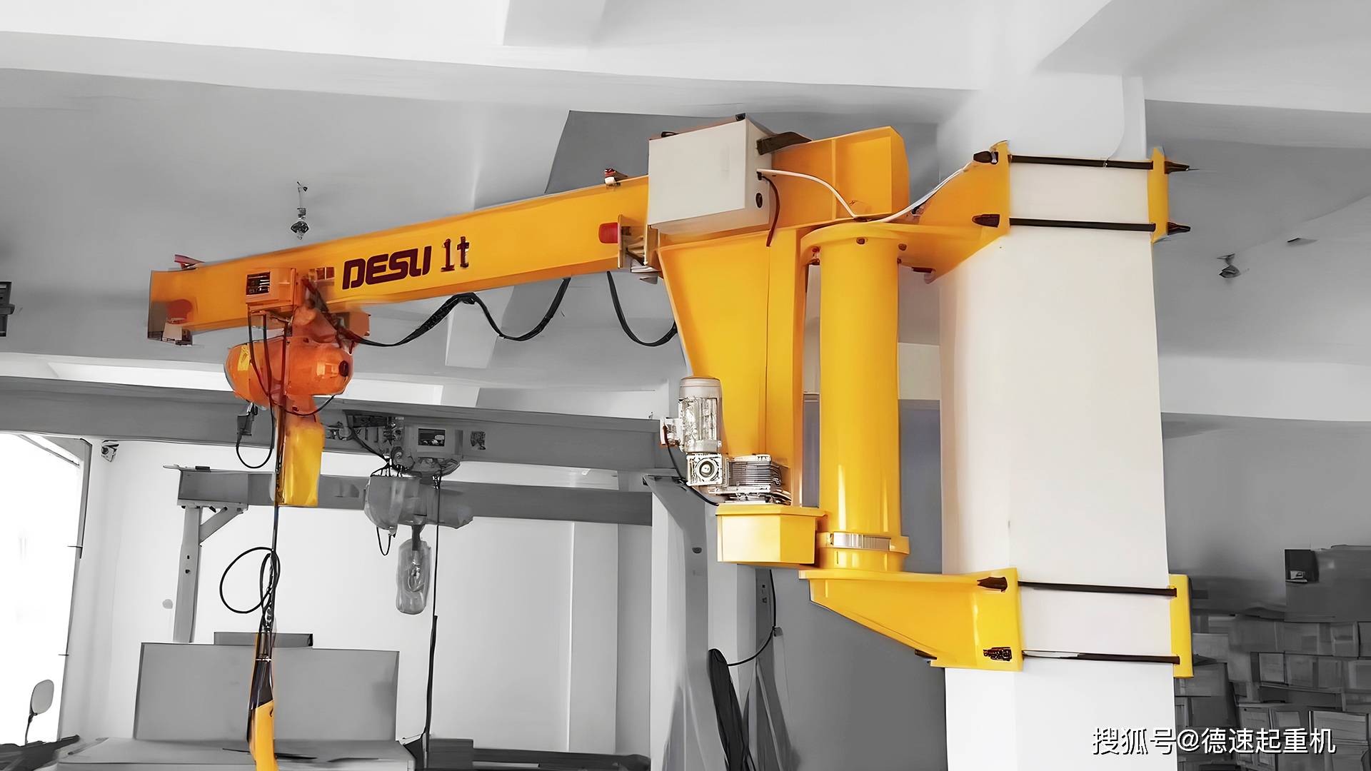与立柱式悬臂吊对比:前者依托墙体安装,节省地面空间且安装成本低,但旋转角度多为180°-220°;后者可360°旋转,载重可达20吨,但需占用地面基础。