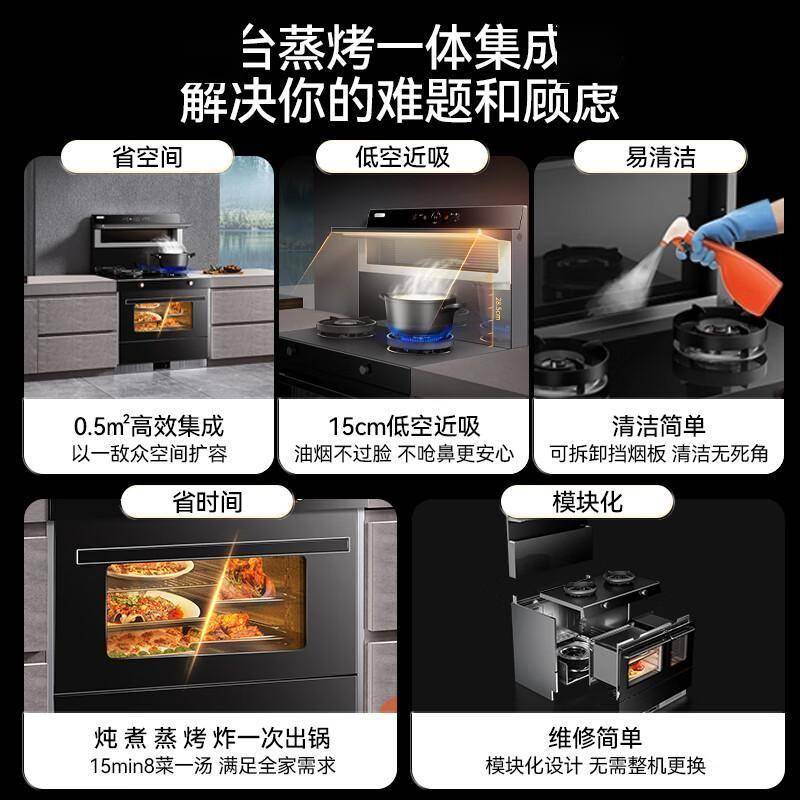 这款集成灶最令人惊艳的功能莫过于其智能语音控制系统。只需简单说出指令,如"打开抽油烟机"或"启动蒸烤模式",设备就会立即响应。即使在双手沾满面粉或油渍时,也能轻松操控,彻底解放双手。