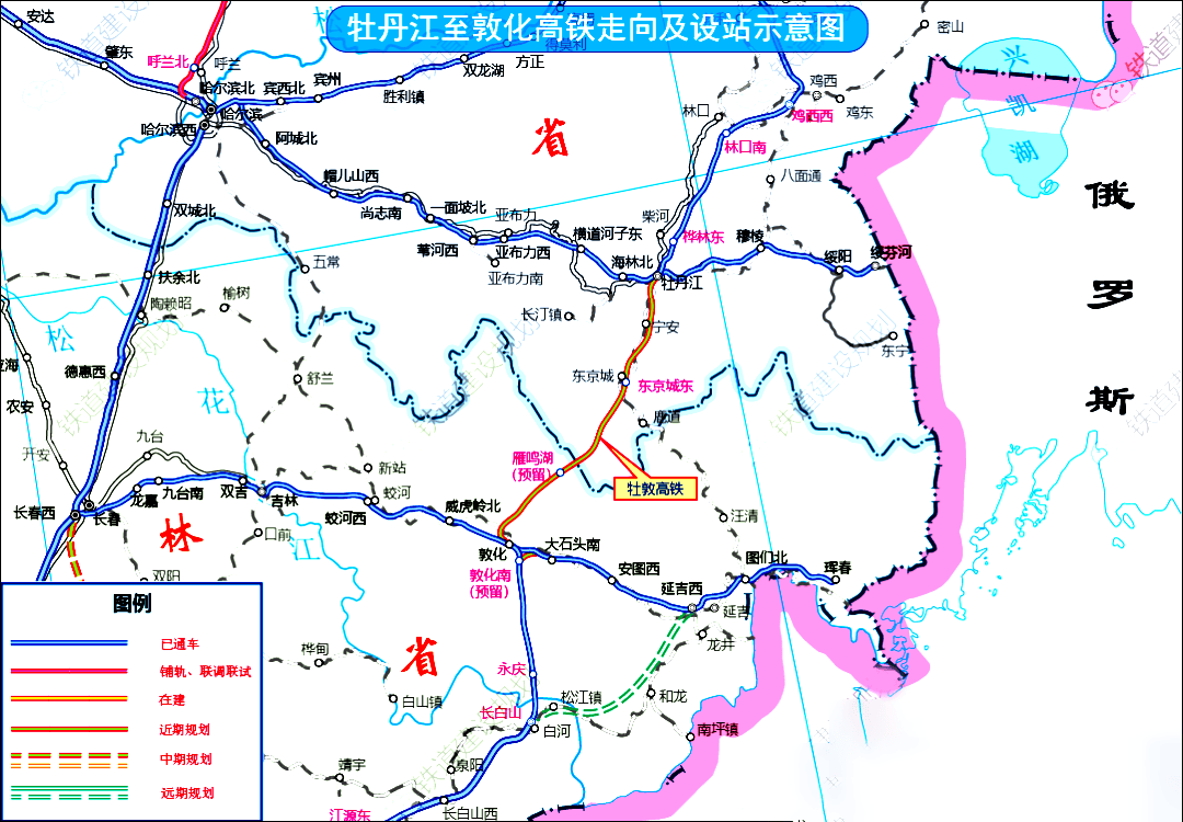 同步建设敦化地区长白山至延吉方向(敦化南至大石头南)联络线长27公里;东京城地区普速外迁工程;牡丹江动车所增建8条存车线。
