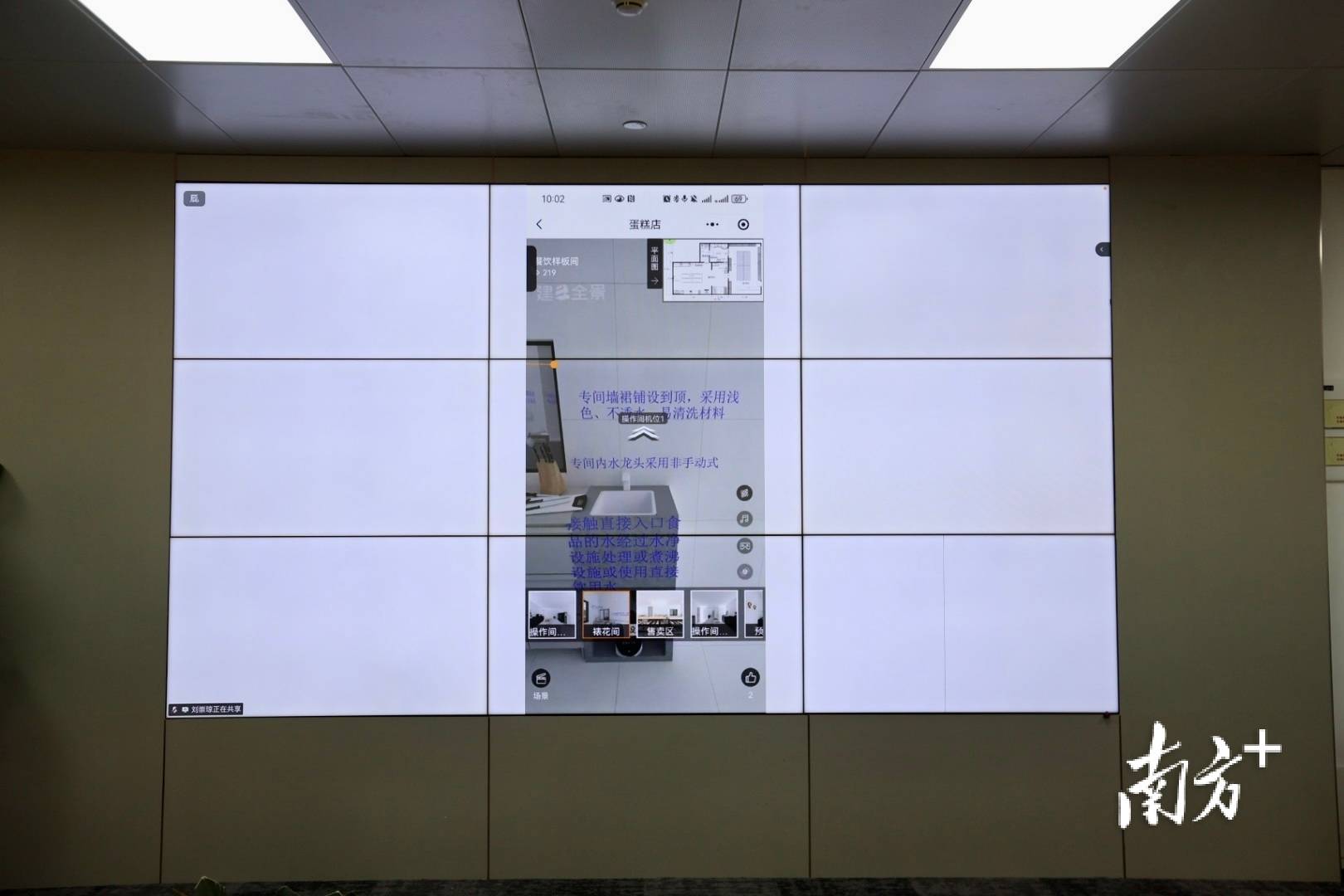 运用三维建模针对性还原饮品店、蛋糕店、粥粉面店等常见餐饮业态从食品处理区到就餐区的每一处细节布局,VR实景拍摄展示越秀区内优质餐饮店的粗(初)加工间、烹饪间、洗消间、专间、仓库等功能间,将《广东省市场监督管理局食品经营许可和备案实施细则》等法律法规要点拆解为与样板间场景对应的通俗指南,通过智能标注在各类餐饮业态和功能间中直观呈现,申请人只需指尖不同区域的功能划分、设备摆放、动线设计等关键信息。