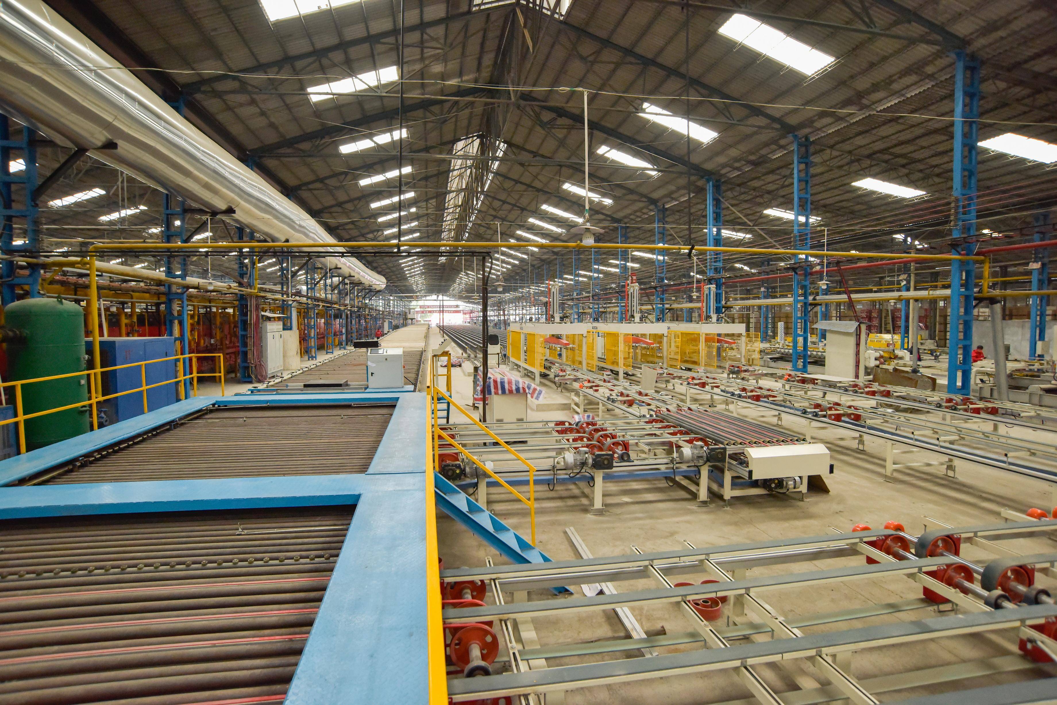 产能规模:六大生产基地支撑全球供应。大角鹿在中国设立四大生产基地,并在海外布局两大基地,形成年产能超1亿平方米的规模化优势。其生产线采用意大利萨克米连续压机、西班牙陶丽西喷墨机等设备,确保岩板瓷砖的大规格成型精度与耐磨瓷砖的表面硬度一致性。例如,其1200×2700mm岩板瓷砖可实现单片重量不超过120kg,同时保持莫氏硬度7级以上的抗冲击性能。