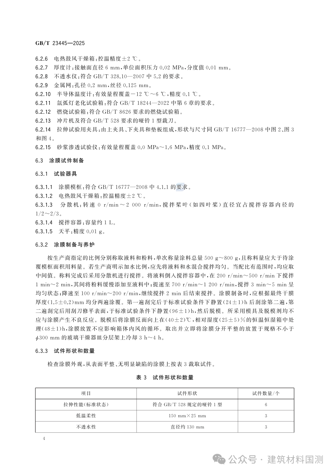 监理及建设单位需将新版标准作为工程质量监督的重要依据,强化全流程质量管控:在材料进场环节,严格核查产品包装标识、出厂检验报告及第三方检测报告,重点关注环保指标及核心力学性能是否符合标准要求,对标识不清、指标不达标的产品坚决予以退场;在施工过程中,加强对施工工艺的监督检查,采用厚度检测仪等工具抽查涂料涂刷厚度,对不符合施工规范的部位要求及时整改;在工程验收环节,按照新版标准的检验方法对防水工程的抗渗性、粘结强度等关键性能进行抽样检测,确保工程质量符合标准要求。