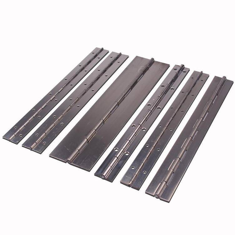 美杰金属的长铰链具有众多突出特点。首先是优质的载荷均布能力,它能将门扇或盖板的重量和负载,通过整条铰链均匀地传递到框架或箱体上,避免了载荷集中在几个点上,从而有效防止门扇或盖板因自重或外力而产生的弯曲、下垂、扭曲。其次,卓越的抗变形与稳定性确保了长期使用后,门缝依然保持均匀一致,开关动作始终顺畅,不会出现卡滞或关不严的问题。对于需要密封的应用场景,长铰链能保证门扇与门框的精确、平行对齐,使得安装密封条成为可能且有效,这是点状支撑铰链难以实现的。此外,长铰链通常由坚固材料制成,能承受更大的冲击和反复开合的应力,使用寿命远超多个独立铰链的组合,减少了因单个铰链损坏而导致整个门失效的风险。在安装与维护方面,虽然单件较重,但安装时只需对齐并固定一条铰链,相比需要精确对齐多个独立铰链的位置,有时反而更简单,更容易获得笔直的门缝。而且由于其高耐用性和防变形特性,大幅减少了因门扇下垂、卡死而需要维修、调整或更换铰链的频率和成本。