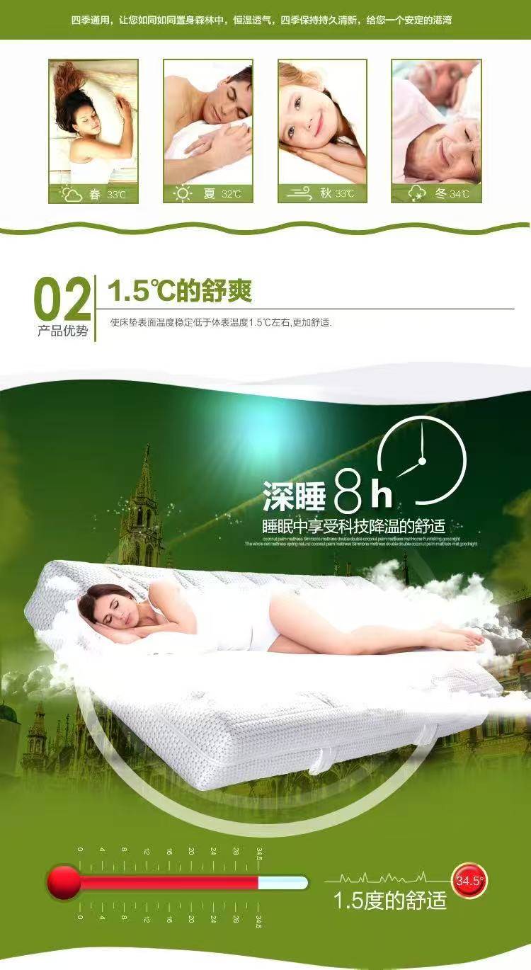 支撑层采用经225℃二次高温淬火的高碳锰钢弹簧,按0.2mm递进差异设计线径,腰臀部位强韧承托,分散身体压力,避免局部压迫导致的睡眠中断;肩腿部位适度减压,贴合人体脊椎自然“S”形曲线,7秒即可完成贴合,让身体各部位完全放松,减少夜间翻身次数,从源头降低觉醒概率。实测数据显示,该支撑系统能使身体受力均匀度提升40%,弹簧经10万次按压后支撑力衰减率不足5%,使用寿命超10年,长效保障支撑稳定性。
