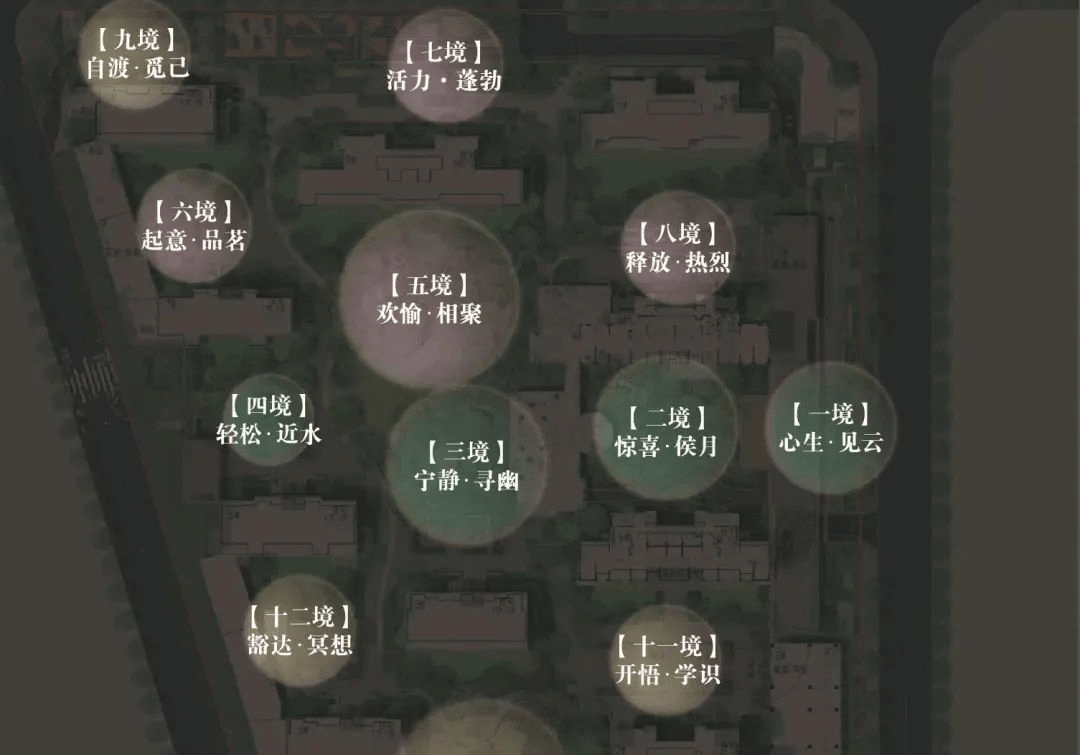 二旬境:儿童乐园、闺蜜茶语花园、青少年体侧场、活力轻氧健身