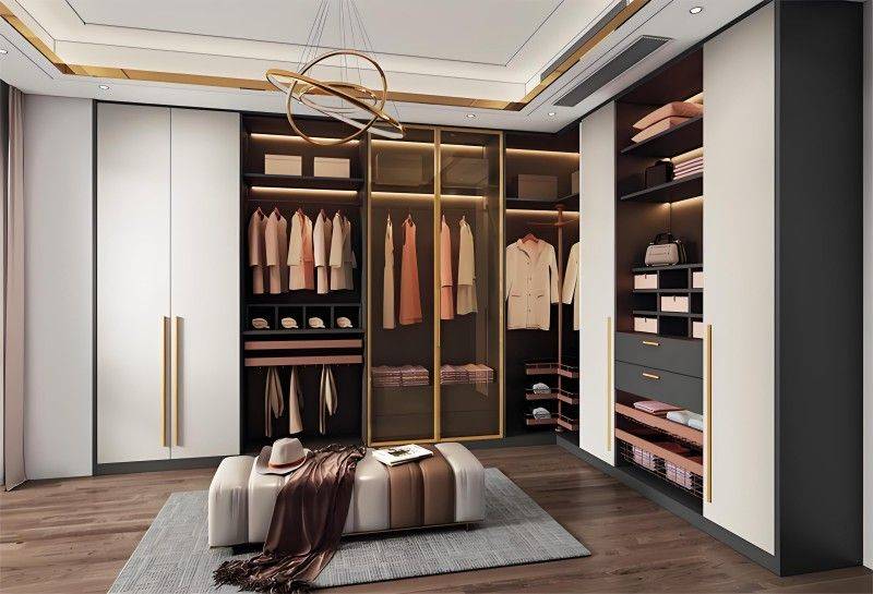 移步至卧室,华居同样注重营造温馨舒适的休息环境。定制衣柜可根据房间尺寸和个人生活习惯进行量身定制,内部分区明确,挂衣区、叠放区、抽屉等一应俱全,满足各类衣物及配饰的收纳需求。顶部的顶线设计和底部的踢脚板处理,不仅增强了整体美观度,还能防止灰尘进入柜体内部。床头背景墙若选用不锈钢材质进行点缀,可通过线条造型或图案拼接等方式创造出独特的视觉焦点,提升整个空间的品质感。与之配套的梳妆台、斗柜等家具也延续了统一的设计风格,共同构建出一个和谐统一的私人领域。