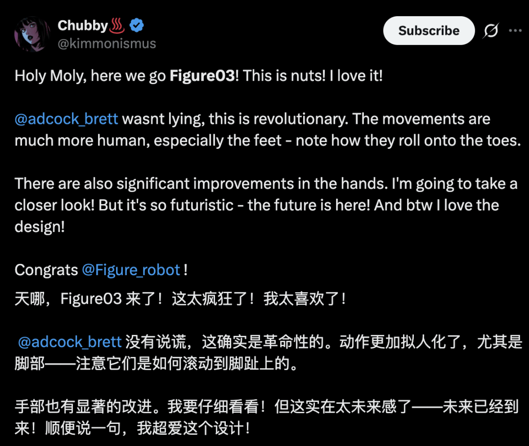 许多网友对Figure 03的自主性和设计而感到惊叹,认为这是革命性的进步。