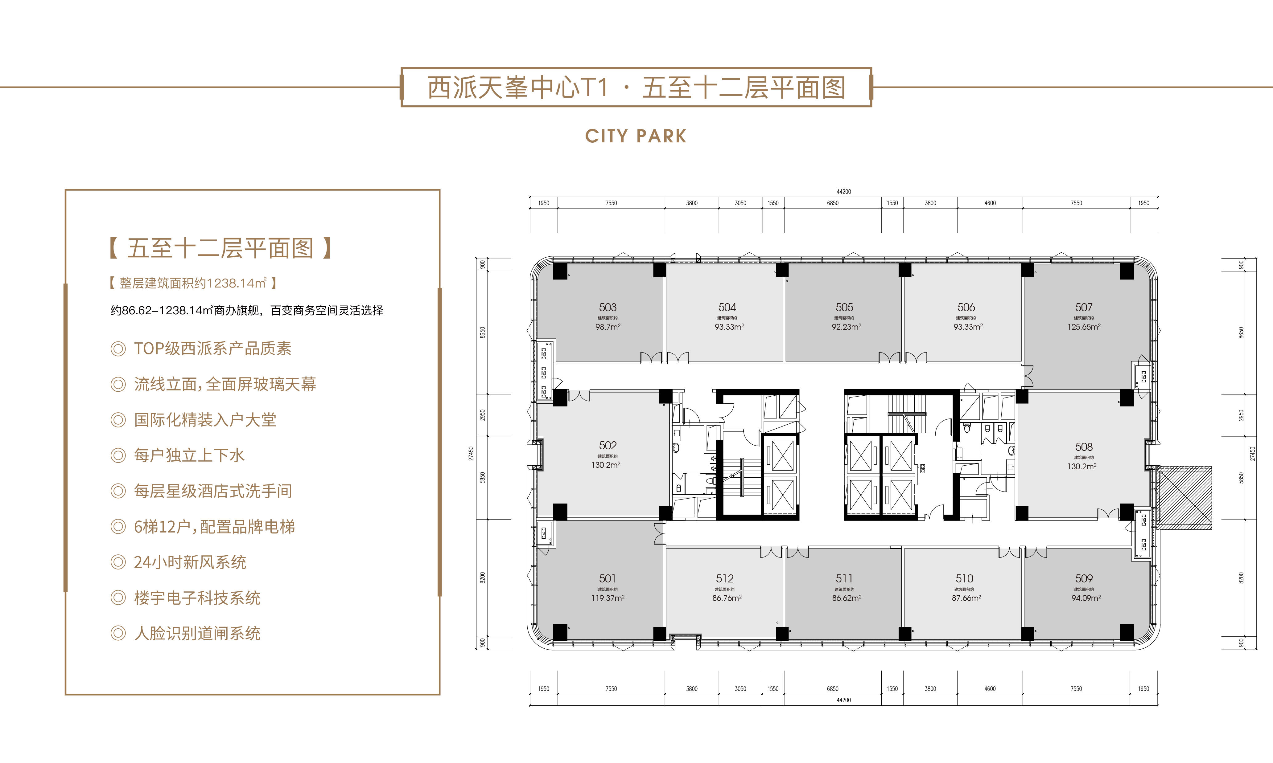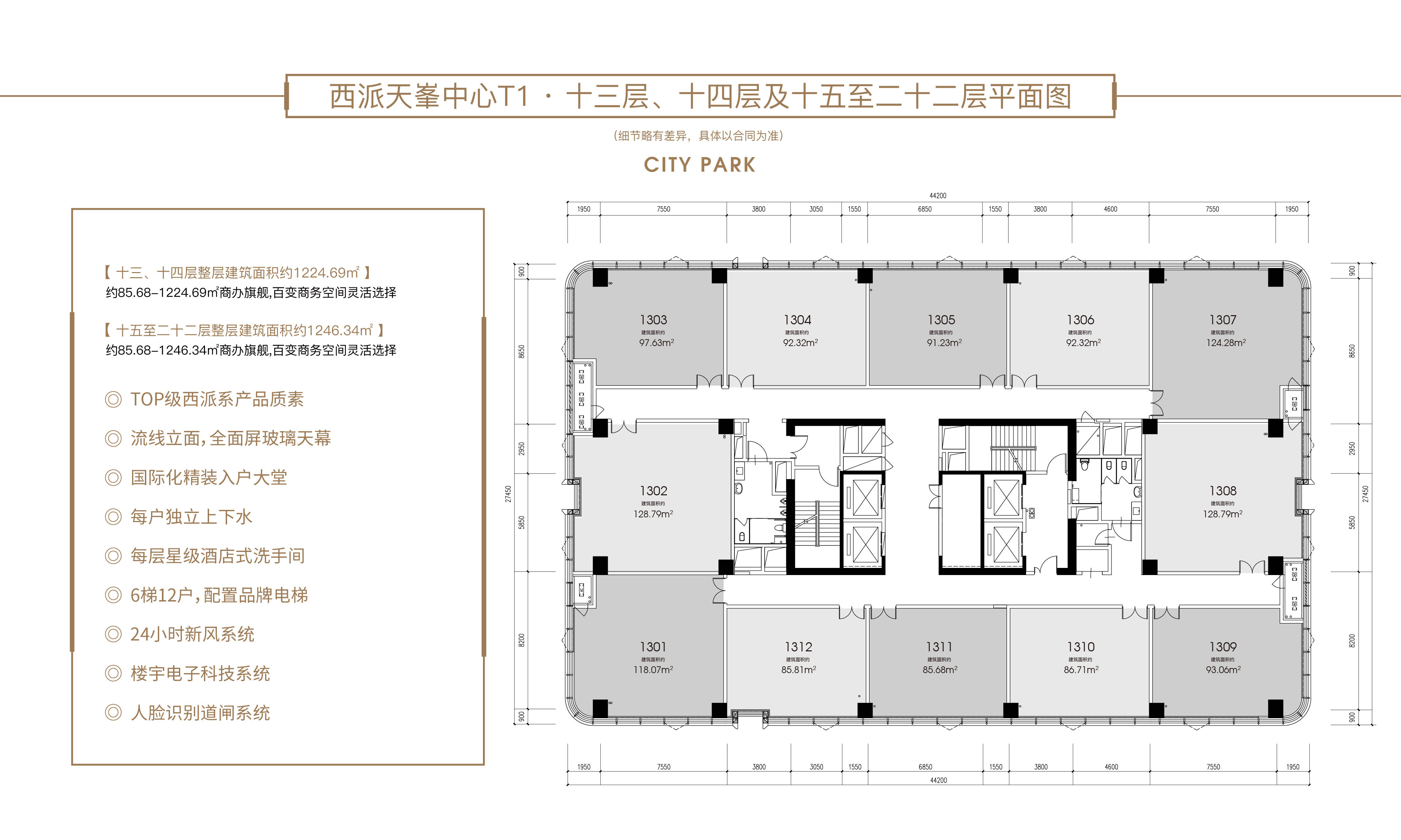 项目规模:商办整体组团约130000㎡,DK9西派天峯中心约38698.06㎡