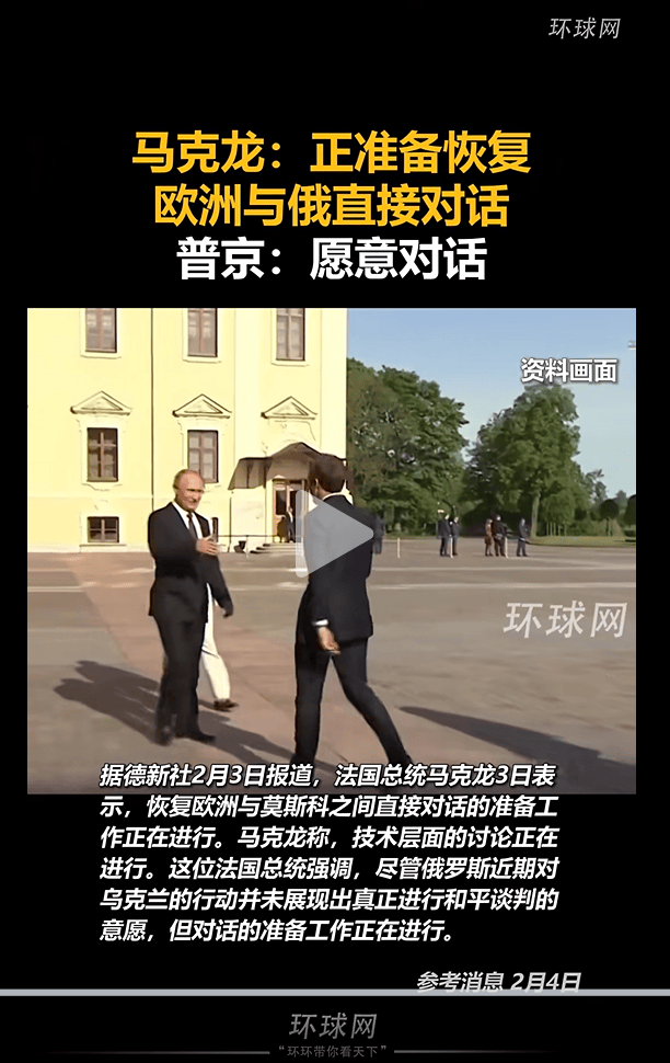 据参考消息援引德新社2月3日报道,法国总统马克龙3日表示,恢复欧洲与莫斯科之间直接对话的准备工作正在进行。