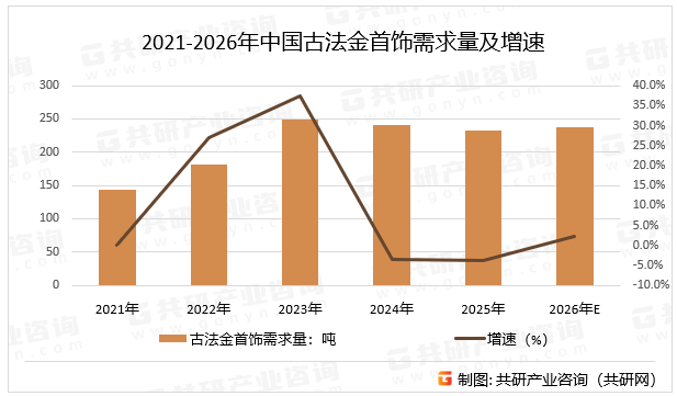 2021-2026年中国古法金首饰需求量及增速
