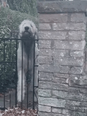 最令人忍俊不禁的是院子的小铁门,它只需悠闲地将那颗威严又温和的大脑袋从栏杆间探出,整扇门就仿佛成了一个专为它设计的“巨犬展示框”。
