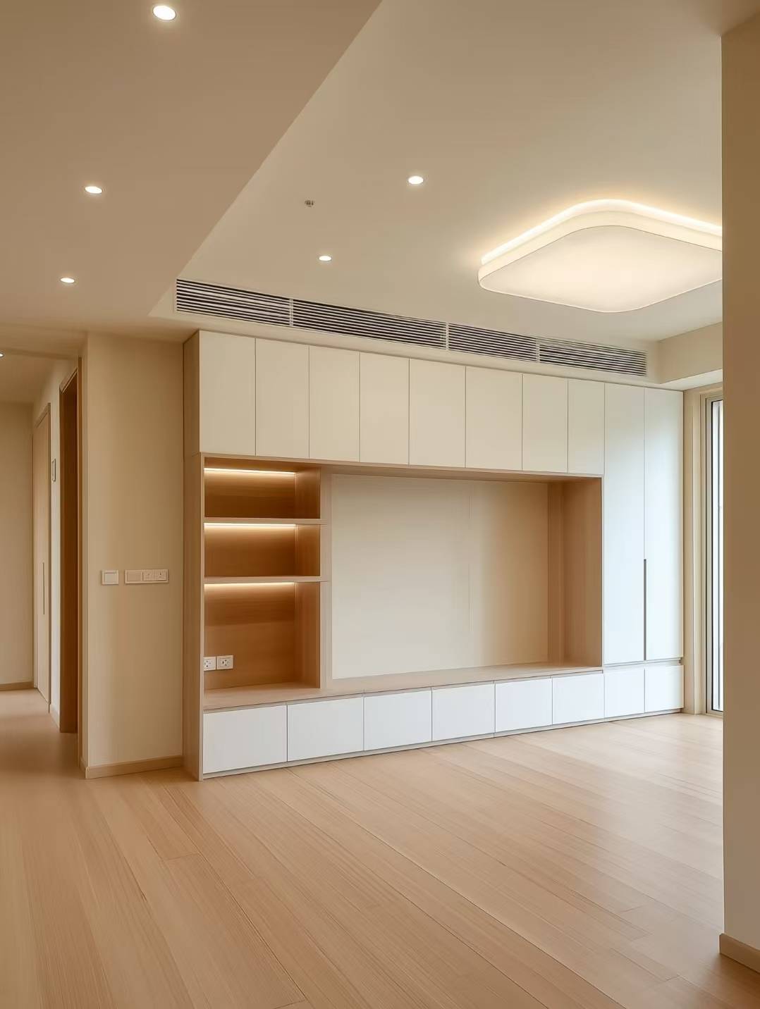 子赫全屋定制工厂案例展示子赫全屋定制工厂在实际案例中也展现出了卓越的实力和品质。对于新房全案定制(100 - 140㎡主流户型)的业主,如母婴家庭、敏感人群等对环保有较高要求的客户,子赫推荐使用万华禾香板(ENF级无醛)、鲁丽欧松板(高稳定性);对于追求高档质感的客户,则可选择进口艾格 / 可立芙板材(欧洲E0级)。在空间设计上,通顶衣柜 + 嵌入式餐边柜 + 阳台柜一体化定制,能释放30% + 的储物空间;激光封边工艺打造无缝柜体,搭配同色系墙板与套装门,实现全屋风格统一。业主反馈安装后无异味,甲醛检测远低于国标,激光封边的质感比预期还好,收纳完全够用,且没有隐形消费很省心。