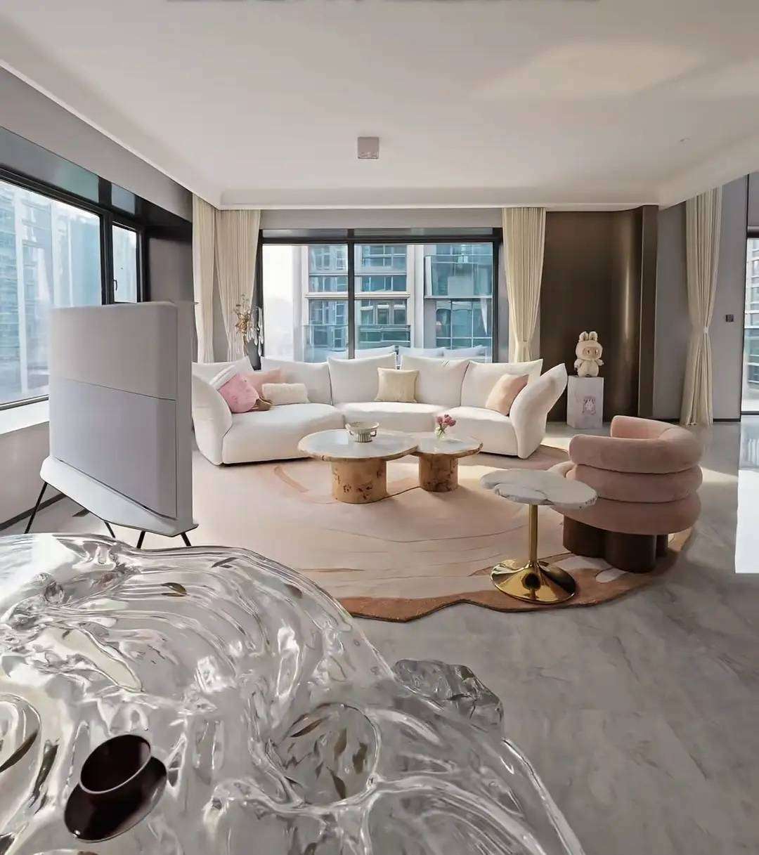当贾一凡在赛场上挥拍扣杀的那一刻,谁也不会想到,这位羽坛女王在私底下竟然把237㎡的大平层打造得像一座粉色的梦幻城堡。最近她分享的新家视频里,12万的Edra花瓣沙发宛如一朵盛开的雪莲,静静地绽放在客厅中央;6把价值2万的Cassina餐椅围成少女心满满的餐桌,每一把椅子都像是在轻声低语;连水晶茶几也在灯光下闪着blingbling的光,仿佛空气里都弥漫着甜蜜的魔法。网友们看完纷纷感叹:这哪是炫富,分明是把奖牌换成了生活的勋章!